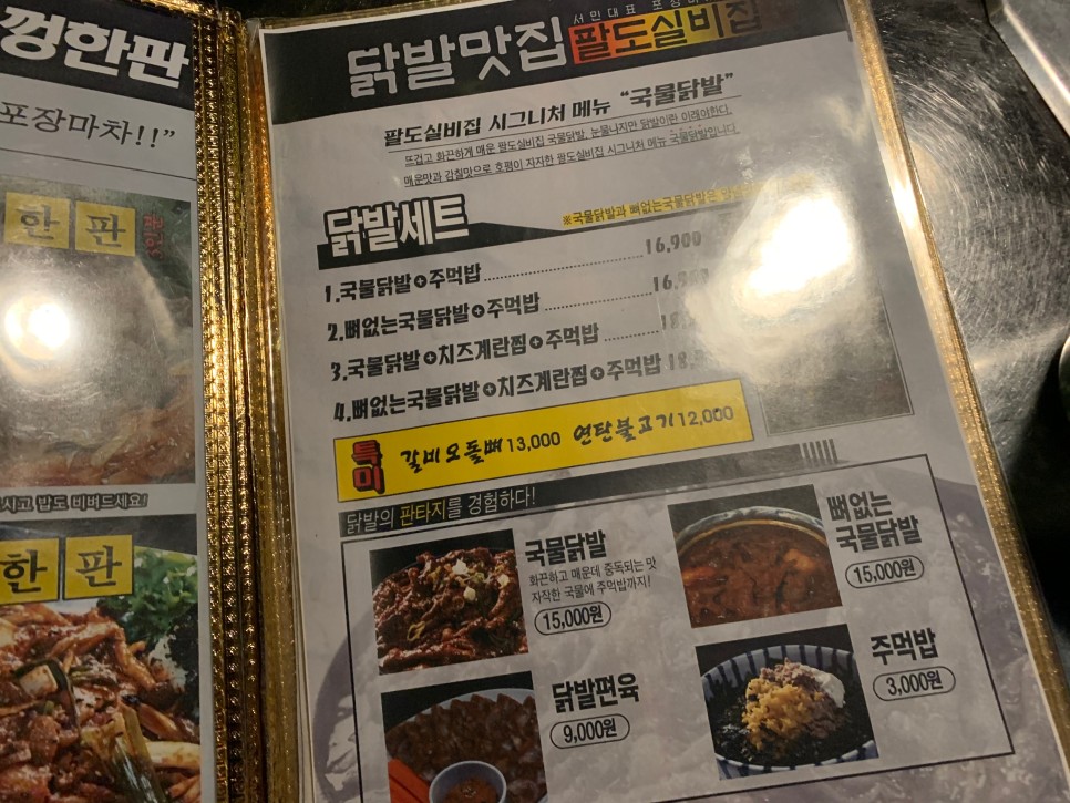 닭발세트가 많아서 주먹밥이랑 세트인것도 있고 치즈계란찜도 나오는 닭발세트도 있더라구요,, 근데 저희 일행중에 닭발을 안먹는 분이 있으셔서,,시켜서 먹어보지는 못했네요ㅠㅠ