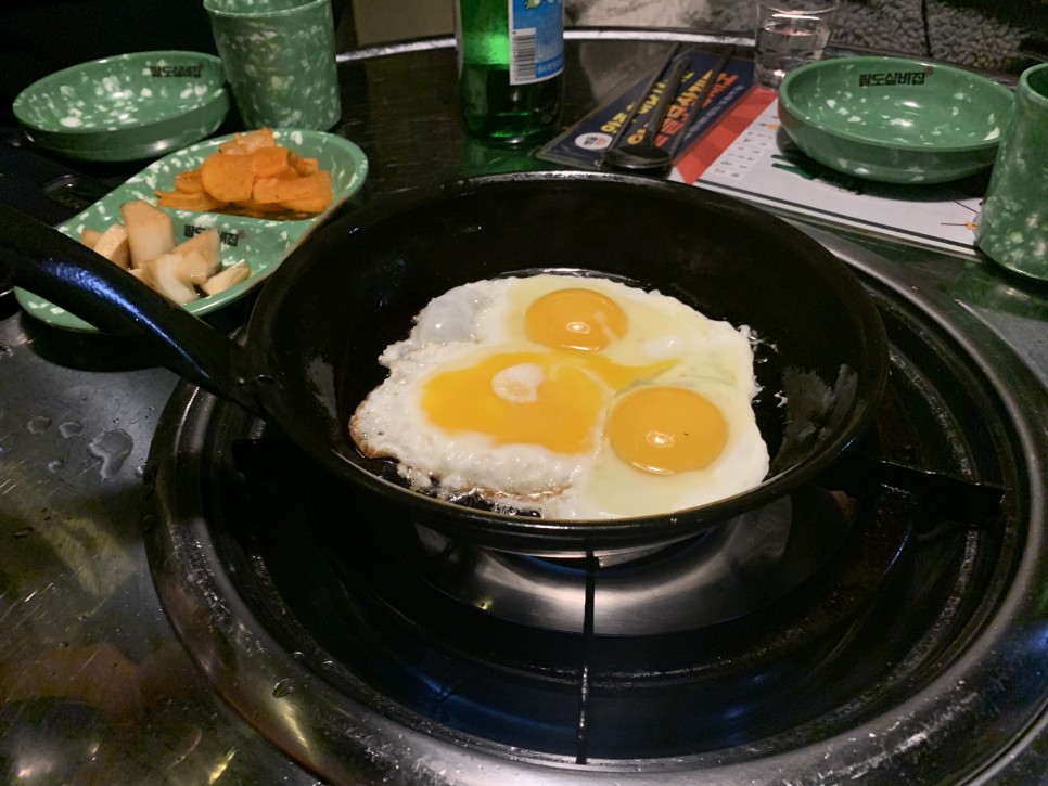 자리에는 식용유,소금,케찹 까지 있어서 계란을 안찾을수가 없어요..단무지랑 양파짱아찌 까지 나와서 일단 기본안주로도 술이 술술..